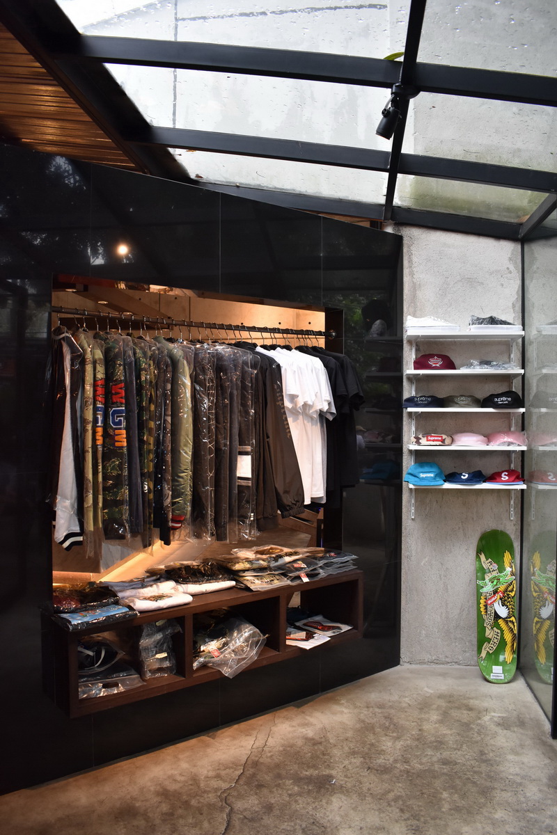 Art is regularly switched around – at the time of my visit, a print of Morrissey modeling for Supreme, shot by Terry Richardson, took center stage. To the side of the space is a rack of clothes from the partners’ clothing line that I was told has been around longer than the shop itself.